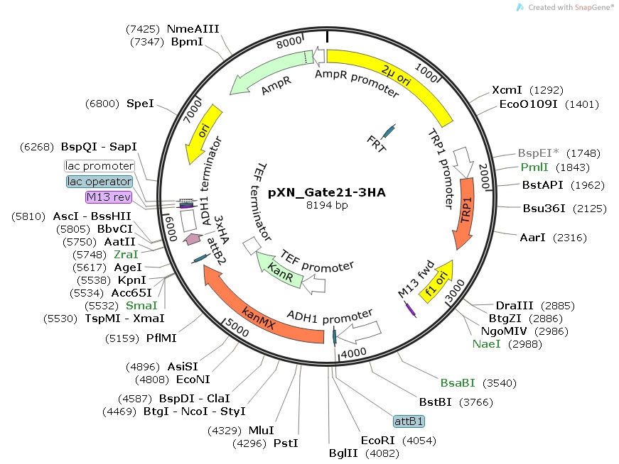 High copy Split Ubiquitin vector for fusing proteins with the NubG peptide. The resulting fusions contain NubG and a tripple HA tag at the C-terminus.