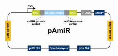 Arabidopsis thaliana amiRNA individual clone in pAmiR vector targeting TET10; pSoup (stock number CD3-1124) is required as a helper plasmid for efficient transformation of plants with this clone.
